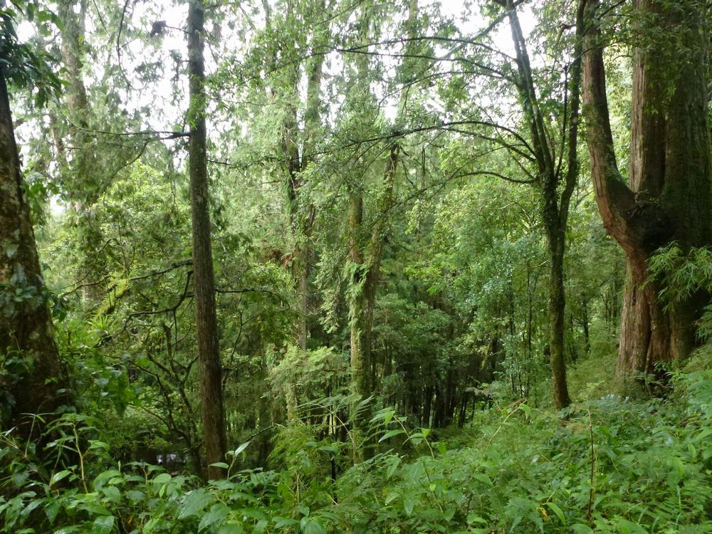 針葉樹の森はタイワンヒノキ(台湾檜)、ベニヒノキ(紅檜)を中心にツガ、モミなどが混在していた。思いの外明るかった。若木が多いからだろうか。