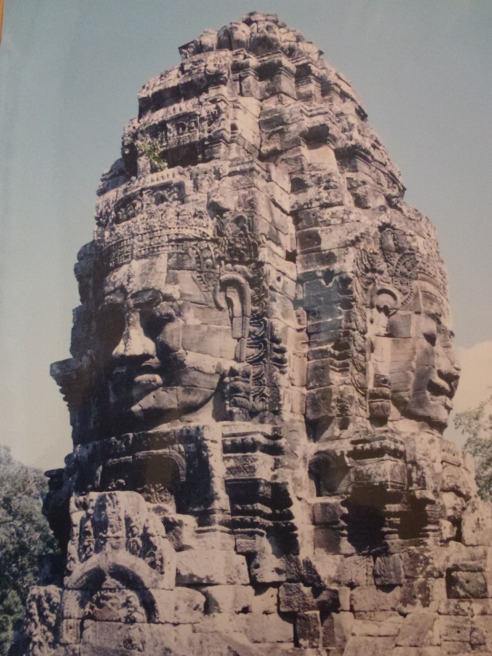バイヨン寺院の四面像は観世菩薩像のほかに、ヒンドゥー教の神々、戦士の葉飾りを被っていることからジャヤヴァルマン7世の偶像とする見方など諸説ある。寺院は様々な神を祀る寺院として存在していたという一つの証なのかもしれない。