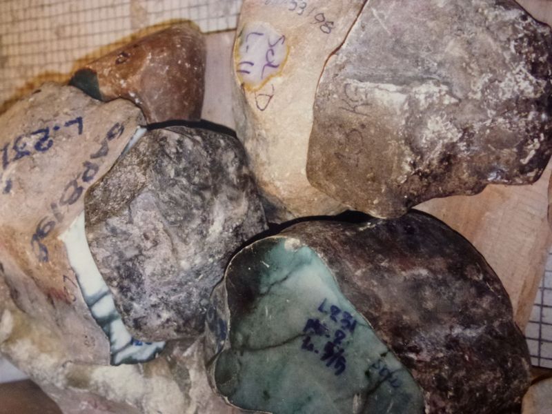 100人はいただろうか。自慢の「石」を大事そうに抱えている男、路上に置いて動かない男たちがいた。女性はいなかった。石は外から見るとふつうの石の塊だった。ただ、一カ所だけがカットされ、中の玉がのぞいていた。商いは上着の下にお互いの手を入れ、その指の動きで決まる。値段がうまく折り合えたかどうかは男たちの表情でわかった。返還後からすでに四半世紀以上が経って、同じような市が続いているかはわからない。