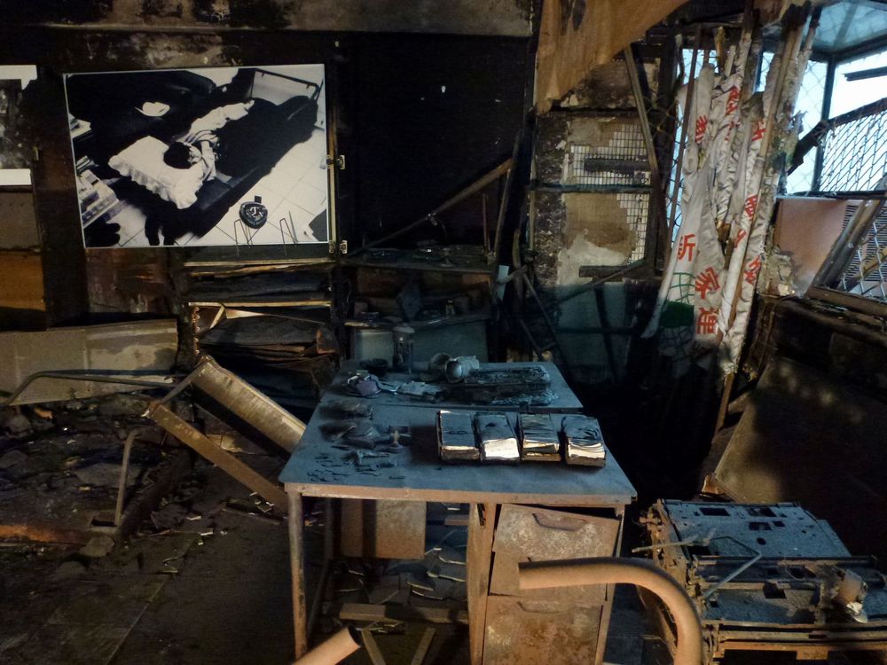 焼け跡がそのままに残る部屋に入ったとき、燻(くす)んだ壁、机から発散される気、エネルギーのようなものに圧倒された。